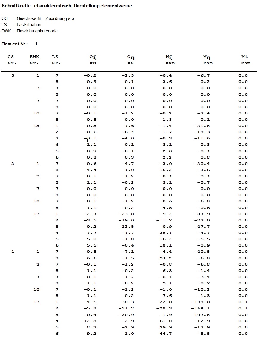 Dadurch wird das Auffinden der zur Bemessung einzelner Bauteile relevanten Schnittgrößen deutlich erleichtert. Darüber hinaus lässt sich durch die komprimierte Darstellung ein im Vergleich zur bisherigen Version um - je nach gewählter Ausgabevariante - bis zu 50% reduzierter Umfang des Ausdrucks erreichen (bezogen auf die Seitenanzahl).