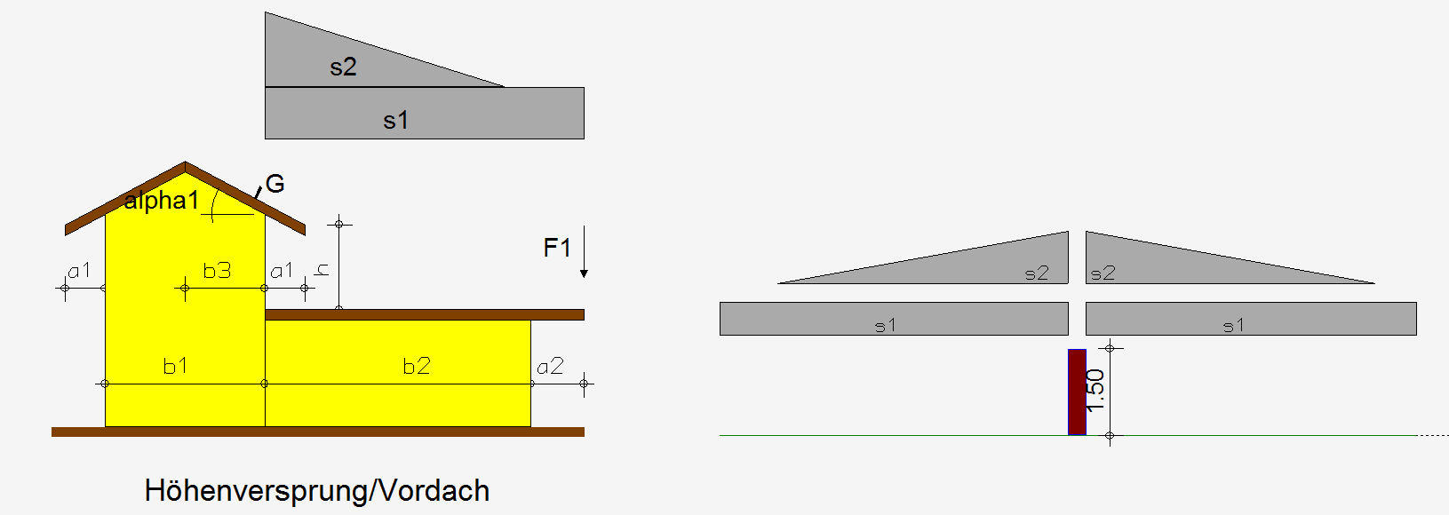 eine Dachform, ein Versprung und eine Anwehung können in einem Nachweis zusammengefasst werden