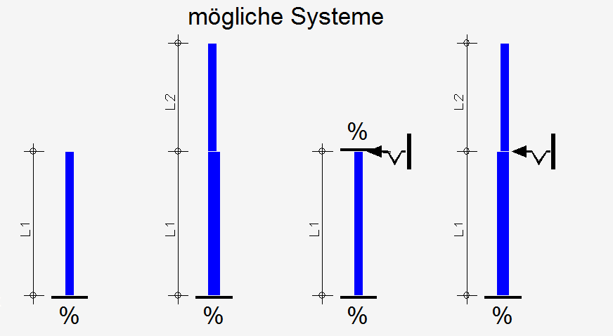 eingeschossige Mauerwerkswand als Wand/m oder Wandstück (Pfeiler) wahl-weise 2-, 3- oder 4-seitig gehalten