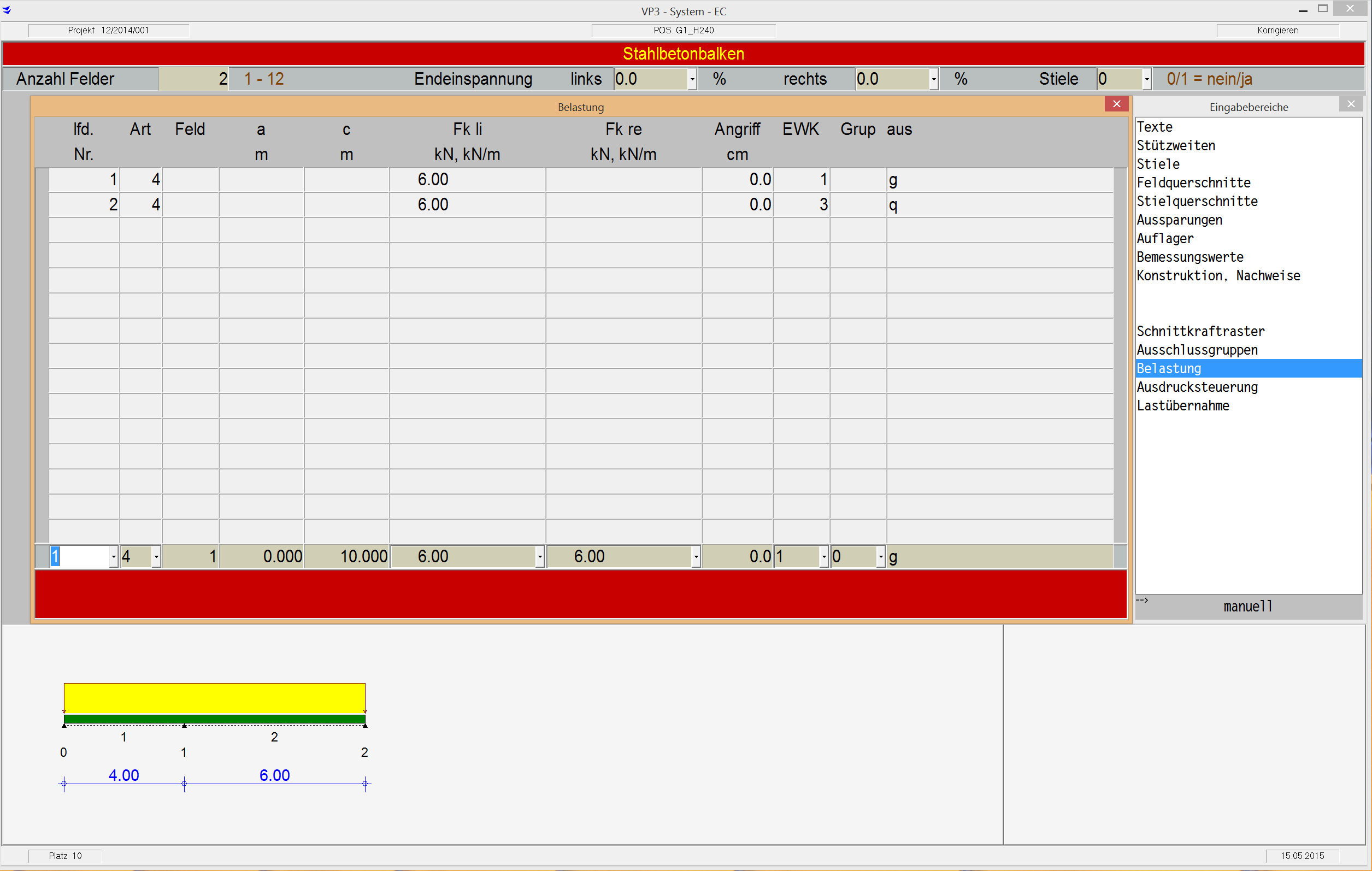 Grundsätzlich ist das gesamte System nicht nur mit der Maus sondern auch mit wenigen einheitlichen Tastatur-Hauptfunktionen bedienbar. Bei einer Bauteilneueingabe wird der Anwender automatisch durch den gesamten Dialog geführt und an jedem Eingabefeld mit den Info-Zeilen über die Möglichkeiten und Normhintergründe informiert.