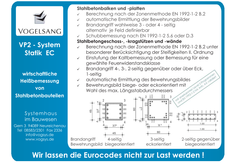 Mit Änderung des Sicherheitskonzeptes in den Normen war die innere Struktur des VP-Systems- Statik überholt. Um weiterhin ein Programmsystem für eine ganzheitliche statische Bearbeitung von Projekten anbieten zu können, wurde das VP2-System-Statik völlig neu entwickelt. Alle Teile wurden auf eine einheitliche Datenbankstruktur umgestellt. Es entstanden Stammdatenbanken für Baustoffe, Stahlprofile, Sicherheitsbeiwerte, Einwirkungskategorien mit Kombinationswerten, unabhängige Einwirkungsgruppen etc.. So wurde es möglich, in allen Programmen sämtliche Einwirkungskategorien charakteristisch getrennt zu halten, automatisch zu kombinieren und die Ergebnisse nach Kategorien getrennt an die Folgebauteile weiter zu geben. - 2007 Heißbemessung Stahlbetonkragstützen
