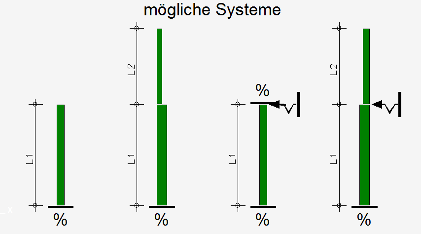 eingeschossige Mauerwerkswand als Wand/m oder Wandstück (Pfeiler) wahl-weise 2-, 3- oder 4-seitig gehalten