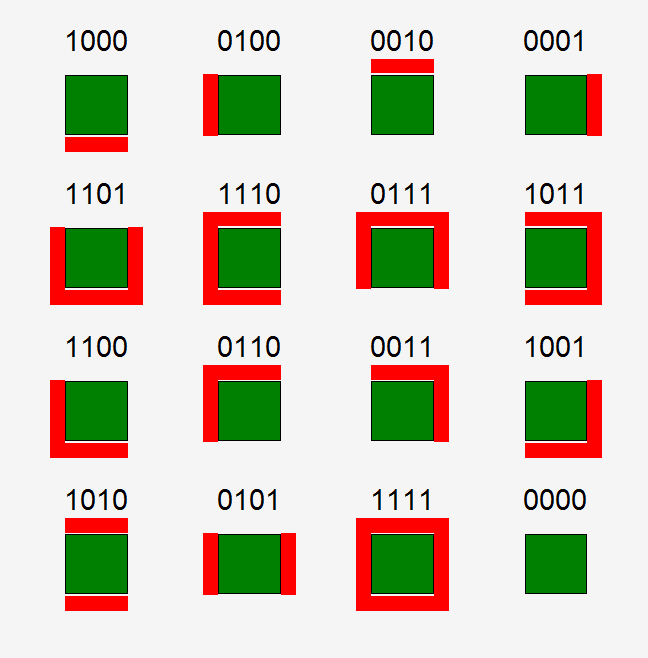 Brandangriff nach ETK einseitig, zweiseitig über Eck oder gegenüber, dreiseitig oder vierseitig