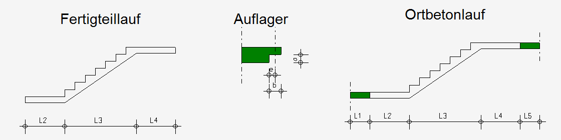 Plattengrundriss kombiniert aus einseitig (Kragarm), zweiseitig über Eck oder gegenüber, dreiseitig und vierseitig unterstützten Rechteckplatten