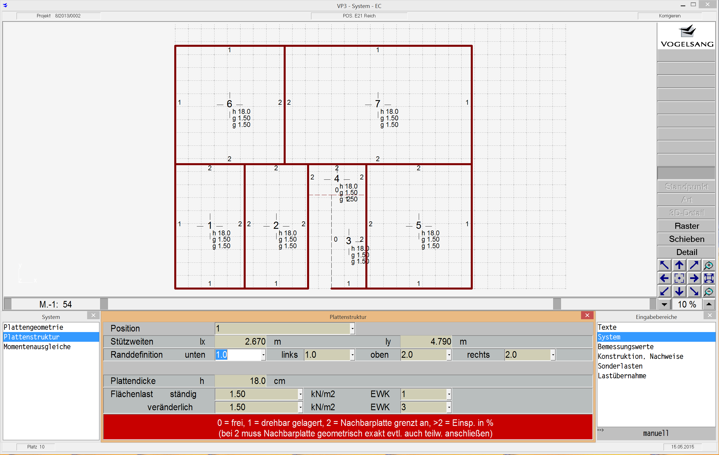Grundsätzlich ist das gesamte System nicht nur mit der Maus sondern auch mit wenigen einheitlichen Tastatur-Hauptfunktionen bedienbar. Bei einer Bauteilneueingabe wird der Anwender automatisch durch den gesamten Dialog geführt und an jedem Eingabefeld mit den Info-Zeilen über die Möglichkeiten und Normhintergründe informiert.